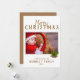 Script de Feliz Natal Pine Holiday Photo Card. Cartão de Natal festivo com Felicidades, seu desejo, nome da família e o ano em uma fonte dourada moderna - personalize com seu texto. O fundo é branco. O design tem folhas de pinheiro verdes. Insira sua foto