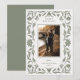 Quadro Botânico do ornamentado, cartão de feriado fotográfico. Linhas de texto modelo para o seu cartões de natal, nome e ano.