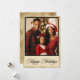 Personalize este cartão de Natal com sua própria foto favorita. Quadro de ouro falso e script "Feliz Feriados" na frente. Vazio no verso para adicionar sua própria saudação pessoal e seu nome. O ouro falso torna este cartão de feriado tão elegante. Perfeito para o feriado.
