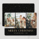Foto preta moderna Cartão de Natal Feliz, com uma colagem de três fotos e estrelas pequenas. Personalize facilmente este cartão fotográfico de Natal com as suas fotografias e texto.