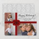 Inclua três fotos para um cartão de Férias super fofo e festivo da família este ano! Esta adorável caixa de presente falsa embrulhada no presente estilo liso de dois lados com cartão de saudação de Natal tem um fundo de damascos de cinza clara com um arco de feriado vermelho e uma imagem de fita decorativa. Adicione suas imagens digitais para torná-las suas. Local Holte Fotografia © Storytree Studios, Stanford, CA