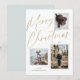 Este cartão de Natal de foto casual, mas elegante, apresenta três fotos e lê "Feliz Natal" em uma fonte de script em folha dourada falsa.