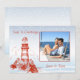 Cartão de Natal de Foto Náutica com Farol de Cores Vermelhos. Use sua foto de férias favorita.