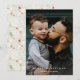 Um cartão de Natal de fotografia botânica pintado à mão com alegria. Com uma superfície de marfim gelado no verso. Personalize com a foto da sua família na frente com assinatura para um cumprimento alegre nesta época!