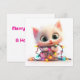 Festividades Cartão de Natal de Gatinho Branco Traçando Alegria