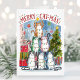 Cores d'água brancas Felizes Catmas Cartão de Natal. Personalize com seu próprio texto de saudação.