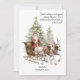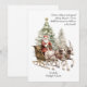 Anúncio de gravidez no cartão de natal com o tradicional Pai Natal no seu trenó puxado por renas com o fundo da árvore de natal. Personalize com sua saudação de natal, data de vencimento do bebê e nomes.