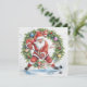 Celebre a temporada com este cartão de Natal festivo com tema de hóquei, apresentando o Papai Noel fazendo um poderoso chute com um taco de hóquei em forma de bengala de Natal.