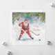 Celebre a temporada com este cartão de Natal festivo com tema de hóquei, apresentando o Papai Noel dando um poderoso chute com um taco de hóquei em forma de bengala de Natal.