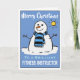 Desenho animado de homem de neve divertido em um cartão de Natal festivo. Cartão de Natal para um Instrutor de Fitness.
