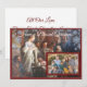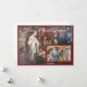 Design apresenta uma reprodução da famosa pintura "Natividade" como fundo da foto que você fornece, que é exibida no canto inferior direito. A imagem de flocos de neve delicados aparece caindo. Tanto a foto quanto o design estão bordados em um quadro branco e arrojado. Todo texto é personalizável.