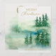 Personalize este cartão de Natal com tema de floresta em aquarela. Adicione o nome da sua empresa na frente e o logotipo no verso do cartão. Um design elegante e sofisticado pintado à mão com um tema popular de floresta de inverno no Natal.