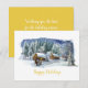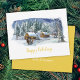 A cena do inverno é maravilhosa com a palavra "feriado feliz" em ouro. Personalize a parte de trás do cartão com saudações pessoais, nomes e sua empresa. Perfeito para um cartão de férias genérico para qualquer empresa.