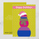 Um cartão de Natal bonito, minimalista e moderno, de varejo bissexual, de cor castanha de neve, com bolas de neve listradas e uma saudação "Feliz feriado" personalizável num pano de fundo amarelo esverdeado. Personalize seu cartão com um texto de saudação personalizado.