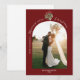 O cartão de Natal perfeito para recém-casados! Este design apresenta um fundo vermelho profundo e rico e um musgo de aquarela logo acima da foto do casamento. As palavras "tenha um Natalzinho casado" acentuam a curva do arco. Tudo o que resta é adicionar uma foto dos noivos e sua mensagem personalizada!