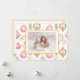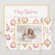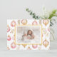 Seus amigos e família vão gostar tanto quando você enviar ou dar a eles suas cartas que têm esse belo design de ornamentos cor-de-rosa e ouro. Especialmente quando inclui a sua própria foto de família. O adorável padrão neste cartão de feriado é um padrão de aquarela muito legal. Todo o texto pode ser editado. Feliz Natal. Por trás está um sentimento sugerido que você pode manter ou mudar para suas próprias palavras. Certifique-se de editar os nomes de exemplo e a data para suas escolhas.