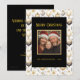 Este cartão de Natal adorável apresenta um padrão aquoso de ouro, prata e ornamentos pretos, que é muito elegante. Você pode manter ou trocar a saudação "Feliz Natal", dourada. Edite os nomes "de" e a data. A principal característica da frente desta placa lisa é a sua bela foto de família. Certifique-se de substituir nossa foto de exemplo. No sentido inverso está uma área de texto opcional. Incluímos um texto de exemplo, que poderá guardar se o desejar ou alterá-lo para a sua própria redação. Além disso, o exemplo de nomes "de" no lado oposto também precisa ser alterado por você. Alternativamente, se você quiser um simples reverso preto, sem texto, para seu próprio escrevendo manual, basta excluir o texto de amostra.