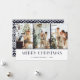 Foto azul personalizada Cartão de Natal Merry com uma colagem de fotos e um padrão de malha azul e branca. Personalize facilmente este cartão fotográfico de Natal com as suas fotografias e texto.
