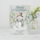 Envie votos calorosos nesta época com este encantador cartão de Natal de boneco de neve em aquarela, personalizado com a sua mensagem no interior. Com um boneco de neve pintado à mão contra um cenário invernal, este cartão de cumprimentos de Natal personalizado é perfeito para enviar alegria natalina à família, amigos ou colegas. O design alegre torna-o ideal para festas de Natal, celebrações de inverno ou simplesmente para compartilhar uma nota sincera. Impressos em papel de alta qualidade com detalhes vibrantes em aquarela, estes cartões de Natal personalizados são projetados para se destacarem na caixa de correio e trazer alegria a todos os destinatários.