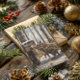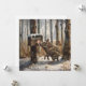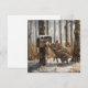 pintura de um porco selvagem em uma floresta de inverno enviando um cartão de natal