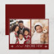 Cartão de Férias de Natal de Script Religioso. Este belo Cartões de foto de Natal apresenta um fundo vermelho com 'vamos adorá-lo' escrito em uma fonte serif clássica e uma bonito letra manuscrita, em branco, com duas estrelas em ambos os lados. Este cartão também contém duas fotos da sua família e do seu nome. No verso está o mesmo fundo vermelho, ao qual você pode adicionar outra foto ou texto adicional selecionando a opção "editar usando a ferramenta design".