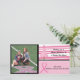Apoie a cura! Celebre a vida! Este é um cartão de Natal fotográfico que tem uma parte superior de impressão zebra rosa e branca com um fundo rosa claro e sólido. Há uma adorável árvore de Natal rosa decorada em bolas bronzeadas, brancas e cor-de-rosa com uma estrela rosa no topo. Na parte inferior há uma fita cor-de-rosa contra o câncer de mama no topo do coração. Adicione sua própria foto ao lado esquerdo da placa. Veja as muitas outras designs que temos em nossa loja. Ilustrações JW