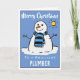 Um desenho animado de boneco de neve em um cartão festivo de Natal. Cartão de Natal para um Canalizador.
