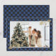 Celebre os feriados com este elegante cartão de Natal de foto de xadrez de búfalo azul. Personalize facilmente com sua foto favorita, o nome da família e o texto.