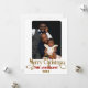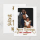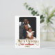 Delicada família e amigos Dourados e Red Photo Christmas Card Greet para os feriados de Natal com este elegante cartão com fotos minimalista com a sua foto favorita em cantos arredondados com ouro delicado Feliz Natal e o seu nome familiar em roteiro vermelho festivo. É fornecida uma linha de texto adicional, mostrada com o ano de férias.