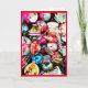 Uma fotografia de Enfeites de natal antigos, lindos e coloridos é o tema do meu cartão de Natal "Desejando-vos Memórias Felizes Do Passado E Alegria No Presente Este Natal".
