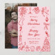 Esta placa de feriado divertida apresenta ilustrações brancas desenhadas à mão em uma paleta de cores vermelha e rosa com uma fonte escrita à mão. Há espaço para uma foto no verso. É perfeito para uma saudação de Natal divertida e você pode combiná-la com qualquer coisa na coleção DOODLE para uma aparência coesa.