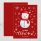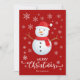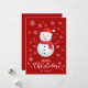 Feliz Natal Vermelho com letra decorativa sofisticada e desenho de boneco de neve. Este cartão de Natal com cor de fundo vermelho foi projetado para que você possa alterar a cor do fundo. Você também pode inserir o nome da sua família ou removê-lo se desejar ter apenas o design sem o texto. Você também pode personalizar a cor das palavras "Feliz Natal" editando este design se desejar.