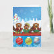 Este cartão apresenta uma família de desenhos animados de castores desejando um feliz natal e um feliz ano novo. Este design é colorido e divertido para os fãs de castores.