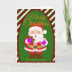 Este cartão de Natal desenhado à mão tem um Papai Noel alegre com biscoitos e cacau, emoldurado em listras de bastão de doce e cores aconchegantes de Natal. Personalize a parte inferior com o nome da família ou da empresa para torná-lo seu. Ótimo para presentes de adolescentes ou para correspondência de Natal com personalidade.