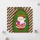 Este cartão de Natal desenhado à mão tem um Papai Noel alegre com biscoitos e cacau, emoldurado em listras de bastão de doce e cores natalinas aconchegantes. Personalize a parte inferior com o nome da família ou da empresa para torná-lo seu. Coloque sua própria mensagem no verso. Ótimo para presentes de adolescentes ou correspondência de Natal com personalidade.