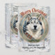 Um cartão de natal de cão rouco, estilo vintage, com uma estética pacífica e de neve. Excelente para representar qualquer cão rouco com pelo menos um humano na família. O título de saudação, a assinatura, a mensagem, a fotografia da família e a legenda fotográfica podem ser personalizados. Pode ser personalizado para o Natal, Yule, Hannukah e qualquer outro feriado de inverno.