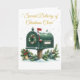 Envie alegria natalina com este cartão Esplendor de Natal Vitoriano. Com uma encantadora caixa de correio vintage coberta de neve e adornada com folhagens festivas verdes e douradas, este design captura a elegância nostálgica e o calor de um Natal Vitoriano tradicional. Perfeito para enviar saudações sinceras e votos alegres a familiares e amigos.