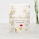 Elegante cervo de Natal em dourado artificial com chapéu de Papai Noel, bolas e flocos de neve em fundo creme. Cartão ideal para enviar do seu negócio/comercial ou organização ou da sua família. . . Personalize colocando seu nome após "de" na frente do cartão.