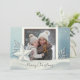 Celebre a época de férias com este elegante cartão com fotos de Feliz Natal, com uma cena serena de inverno em blues e brancos suaves. O cartão exibe uma fotografia confortável cercada por flocos de neve delicados, folhagem de fosco e uma encantadora estrela coberta de neve. Um belo roteiro "Feliz Natal" acrescenta um toque caloroso e pessoal. Perfeito por compartilhar alegria de férias com a família e amigos, este cartão captura a beleza pacífica do inverno e a alegria da estação. Ideal para casais, famílias ou qualquer pessoa que queira enviar um cartões de natal sincero.