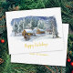 Cena de inverno maravilhoso com a palavra "feliz feriado" em dourado. Personalize o verso do cartão com saudação pessoal, nomes e sua empresa. Perfeito para um cartão de feriado genérico para qualquer empresa.