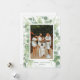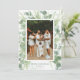 Este cartão de Natal pintado à mão apresenta uma borda aquarela de folhas de eucalipto e pinheiro desenhando uma foto de solteiro. A parte traseira tem espaço para 4 fotos adicionais e uma mensagem maior.