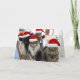Este cartão de Natal hilário e adorável mostra cinco gatos irmãos com chapéus de Papai Noel em suas cabeças peludas. Estes cinco gatos estão sentados em uma mesa com seus olhos verdes correspondentes olhando para você e vestindo as expressões faciais mais bonitas. A mensagem neste cartão diz, "Leite extra com biscoitos de Papai noel, por favor? Feliz Natal."