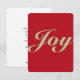 Um cartões de natal simples e moderno com uma mensagem de feriado JOY! Disponível em uma variedade de opções de papel adoráveis. Esta pequena saudação é personalizável com a sua escolha de texto na parte de trás do cartão. Faça disso uma saudação muito especial com sua mensagem pessoal.