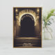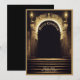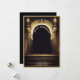 Cartão de Natal de Feliz Escuro com uma cena de entrada de ouro de fantasia com lanternas e entrada de ornamentado.