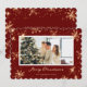Foto vermelha moderna Cartão Feliz de Natal com flocos de neve.