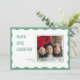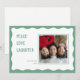 Esta placa de feriado plana apresenta uma foto de solteiro enquadrada em uma linha sólida e uma borda enrolada decorativa.