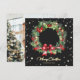 Foto preta elegante Cartão de Natal Merry, com uma camada aquosa de bagas, Holly, cones de pinho e galhos de coníferas. Uma foto atrás. Personalize facilmente este cartão de feriado fotográfico com o seu nome de fotografia e família.