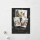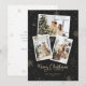Foto personalizada de preto e ouro Cartão de Natal Merry com uma colagem fotográfica, uma elegante letra de escrita e fundo preto adornados com queda de neve e flocos de neve. Personalize facilmente este cartão de feriado moderno com as suas fotografias e texto.