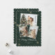 Elegante foto verde Feliz Cartão de Natal com flocos de neve e estrelas em fundo verde de neve. Personalize facilmente este cartão festivo de feriado fotográfico com as suas fotografias e texto favoritos.