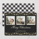 Colagem de fotos de xadrez de búfalos preto e branco elegantes. Cartão de Natal Feliz. Personalize facilmente este cartão preto de Natal com fotos e o nome da família.